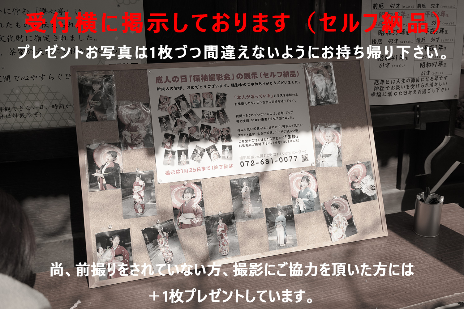 - 振袖撮影会の写真プレゼントのご用意ができました ➡受付横に掲示(セルフ納品)